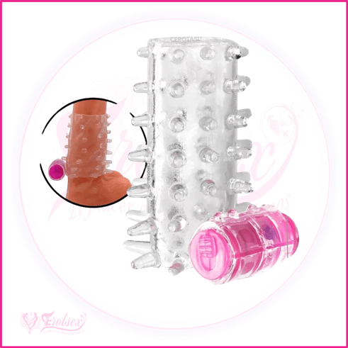 Funda vibradora con estrias para el pene pensado para proporcionar a la mujer una estimulación adicional placentera durante las relaciones sexuales. Estimula las paredes de la vagina además retrasa la eyaculación